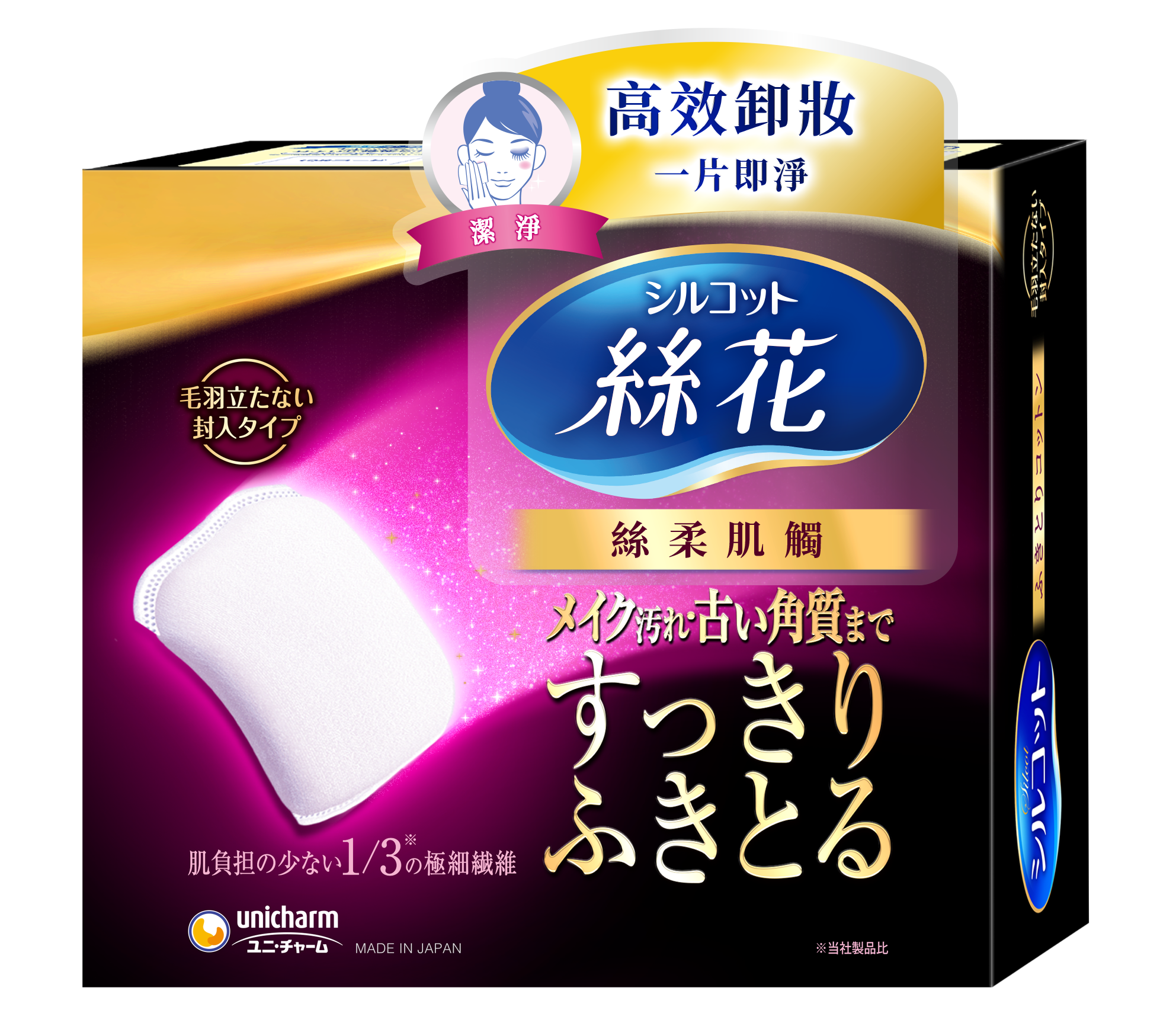 *首創10μm以下極細長纖維外層與粗的cellulose纖維內層形成二層結構。以日本主要品牌化妝棉為對象(2015年10月Unicharm調查)